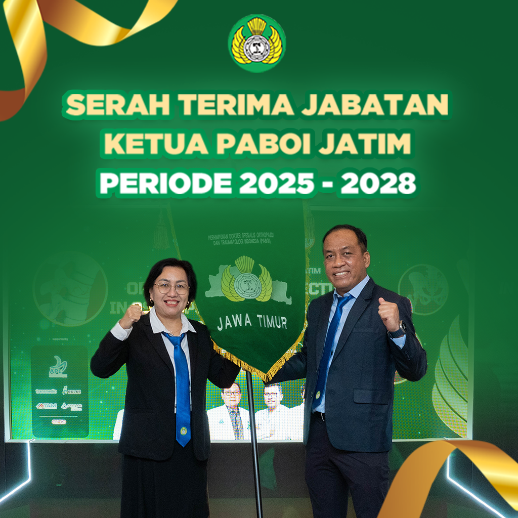 Puji syukur kita panjatkan ke hadirat Tuhan Yang Maha Esa atas rahmat dan karunia-Nya, sehingga PABOI Cabang Jawa Timur dapat terus menjalankan perannya sebagai organisasi profesi yang berkontribusi aktif dalam pengembangan ilmu dan pelayanan Orthopaedi dan Traumatologi di Jawa Timur.